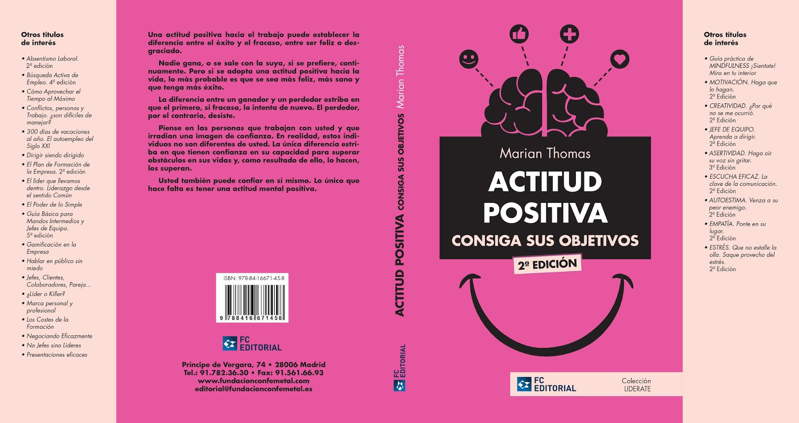 Diseño de portada para el libro Actitud positiva. Consiga sus objetivos, de Marian Thomas, editado por Fundación Confemetal.
