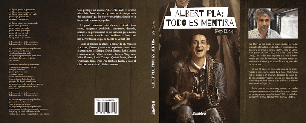 Diseño y maquetación completa de interior, portada y cubiertas del libro Albert Pla: Todo es mentira, biografía escrita por el periodista musical Pep Blay y prologada por el propio Pla, para la discográfica y editorial Satélite K.