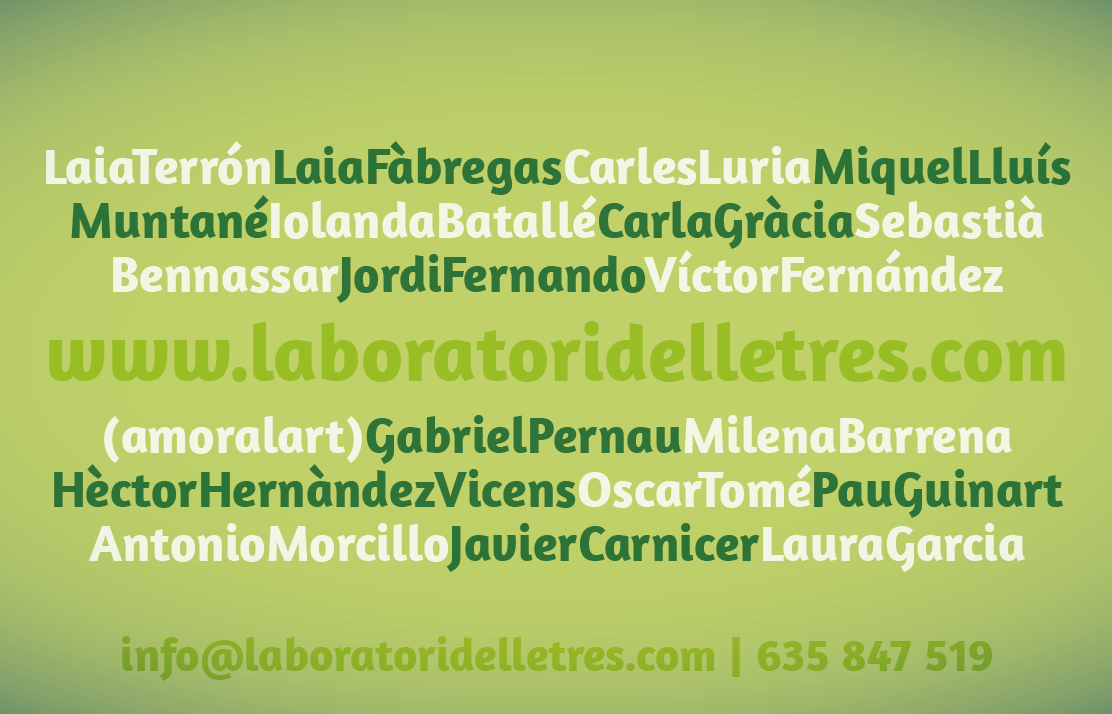 Aquí unos amigos IMAGEN CORPORATIVA, LABORATORI DE LLETRES, TARJETAS Tarjeta díptica para la escuela de creación literaria barcelonesa Laboratori de Lletres.
