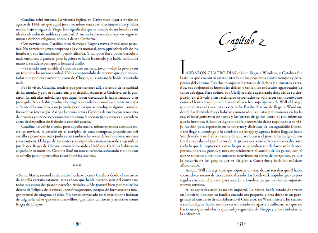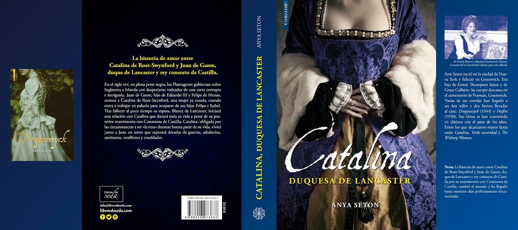 Diseño y maquetación completa de portada y tripas del libro Catalina, duquesa de Lancaster, de Anya Seton, para la editorial Libros de Seda.
