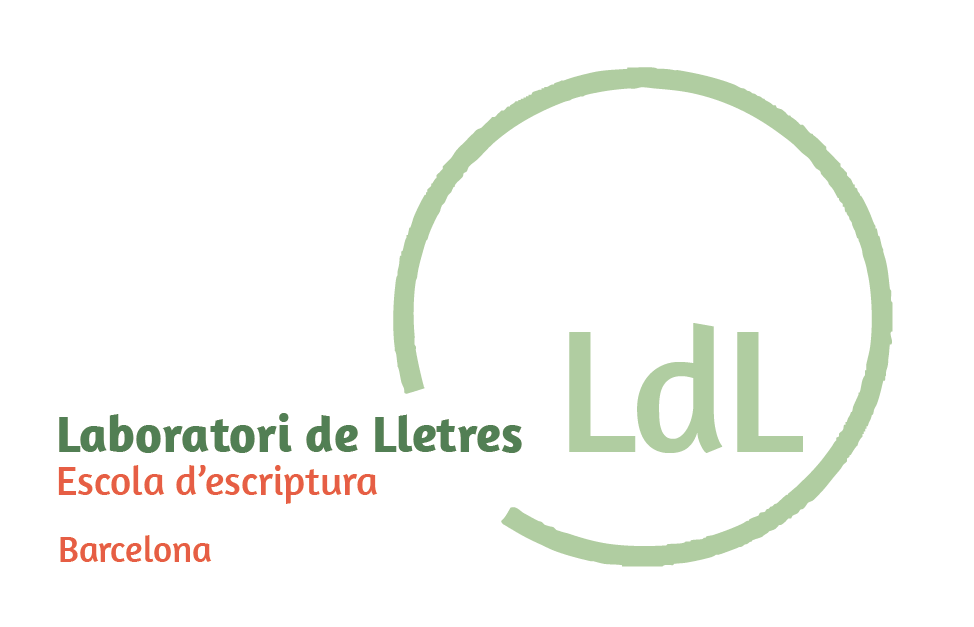 Tarjeta díptica para la escuela de creación literaria barcelonesa Laboratori de Lletres.
