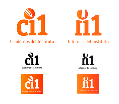 Logotipos para las colecciones editoriales Cuadernos del Instituto e Informes del Instituto, para el Instituto Radio Televisión Española (RTVE).