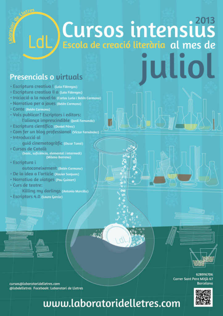 Con buena letra CARTELES, ILUSTRACION, LABORATORI DE LLETRES Diseño de cartel y flyer para la escuela de creación literaria Laboratori de Lletres de Barcelona.