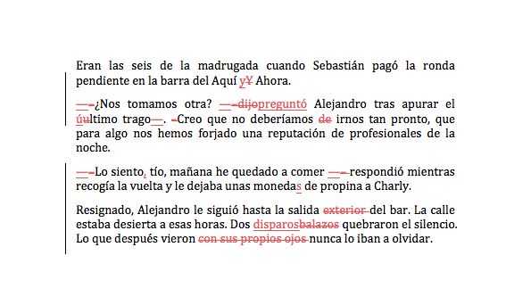 «Por más atención que ponga en lo que hace, uno se equivoca. Uno escribe algo, un artículo, un cuento, toda una novela, y vuelve una y otra vez sobre lo que ha escrito, repasa, corrige, tacha, sustituye, pero está demasiado cerca de su propio trabajo, de modo que hay cosas evidentes que no ve, y por eso necesita el examen de otros ojos que no sean los suyos, a ser posible de alguien especializado, un editor o un corrector».