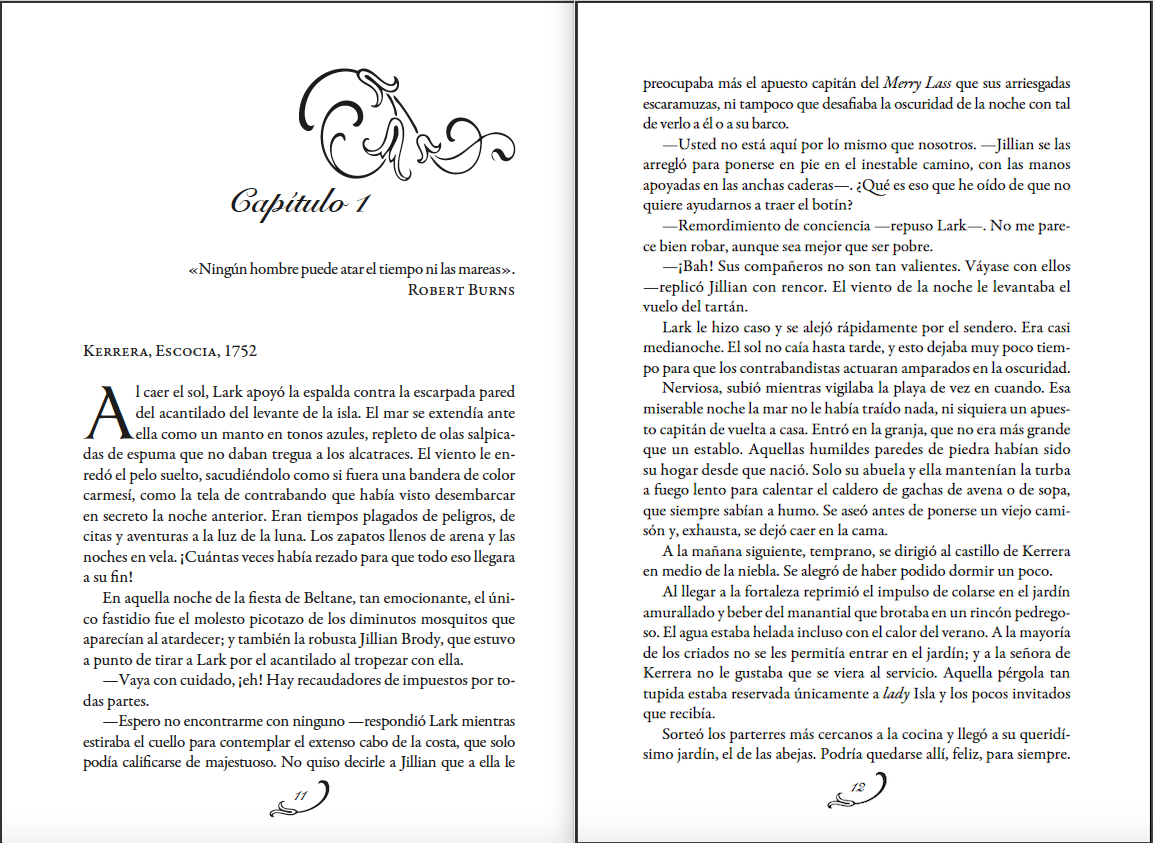 En esta colaboración con Libros de Seda podemos mostrar parte de los trabajos que habitualmente realizamos para esta editorial: maquetación y diseño interior y corrección de textos. Con El laird desterrado, de Laura Frantz, emprendimos un viaje literario por Escocia, Virginia y Jamaica del que volvimos con una aventura más en la mochila de Rasgo Audaz.