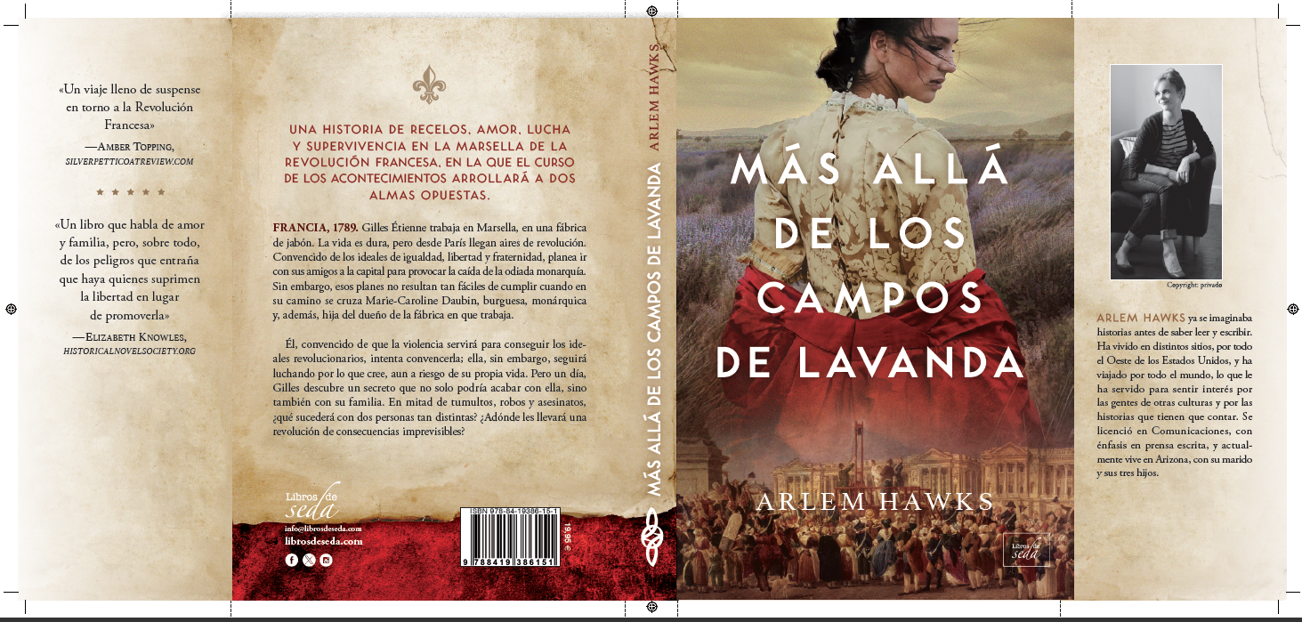 Desde la corrección de estilo y la adaptación de cubierta al diseño y la maquetación interior. Esta colaboración con Libros de Seda ha sido de lo más completo. Con Más allá de los campos de lavanda, de Arlem Hawks, nos hemos sumergido en la época de la Revolución francesa, en tierras de la Provenza.