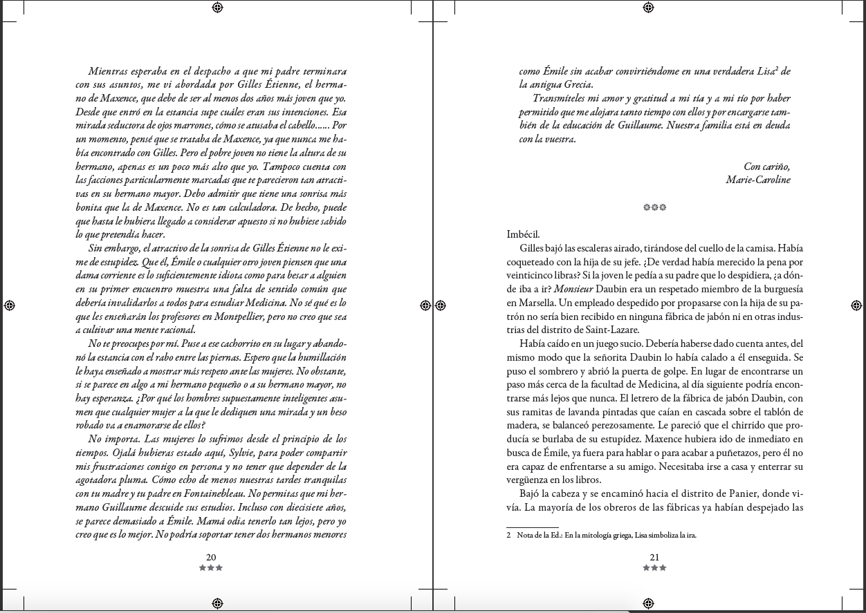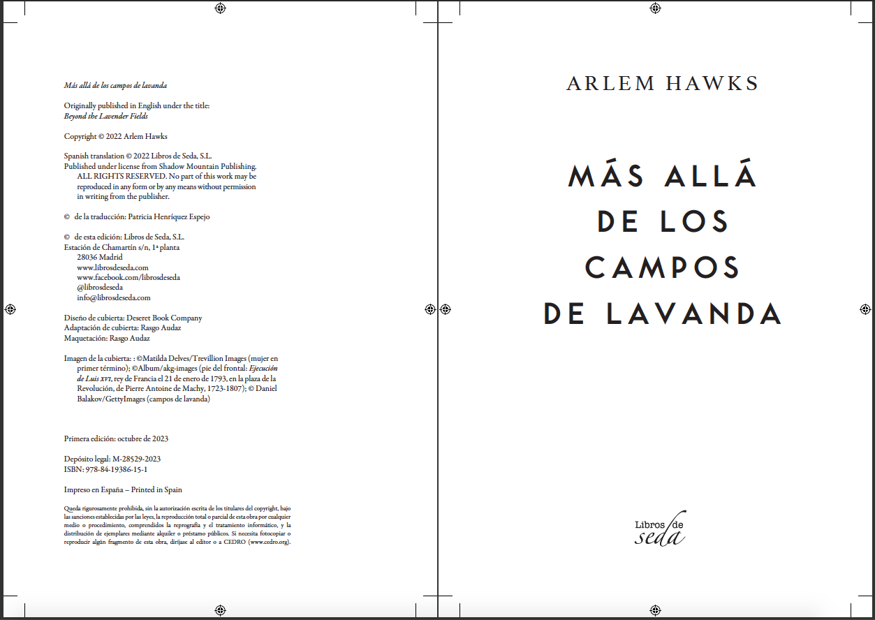 Desde la corrección de estilo y la adaptación de cubierta al diseño y la maquetación interior. Esta colaboración con Libros de Seda ha sido de lo más completo. Con Más allá de los campos de lavanda, de Arlem Hawks, nos hemos sumergido en la época de la Revolución francesa, en tierras de la Provenza.