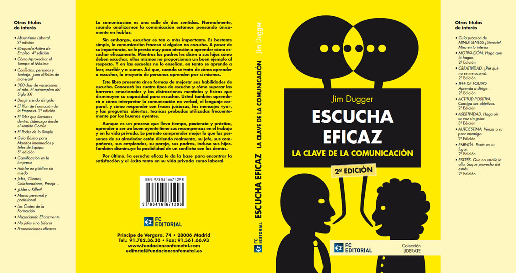 Diseño de portada y cubiertas del libro Escucha eficaz. La clave de la comunicación, de Jim Dugger, para la editorial Fundación Confemetal.