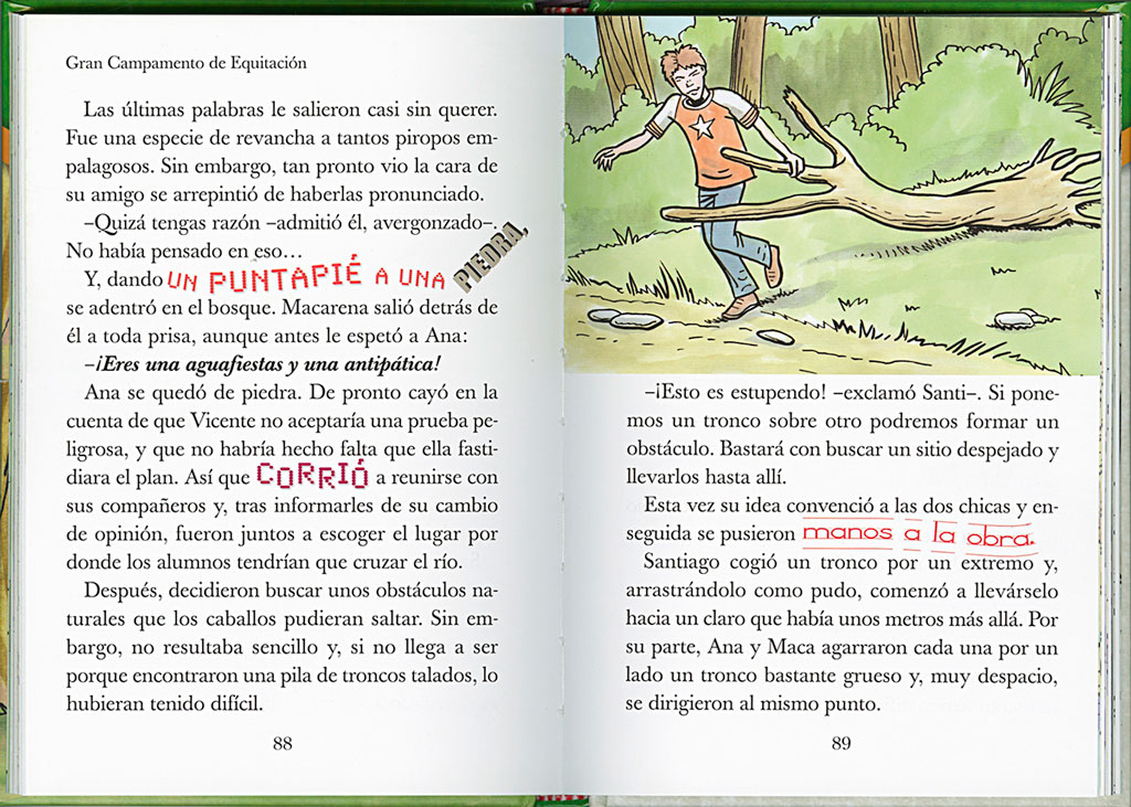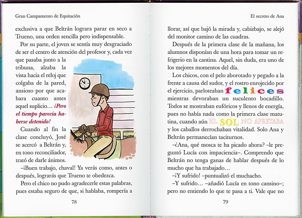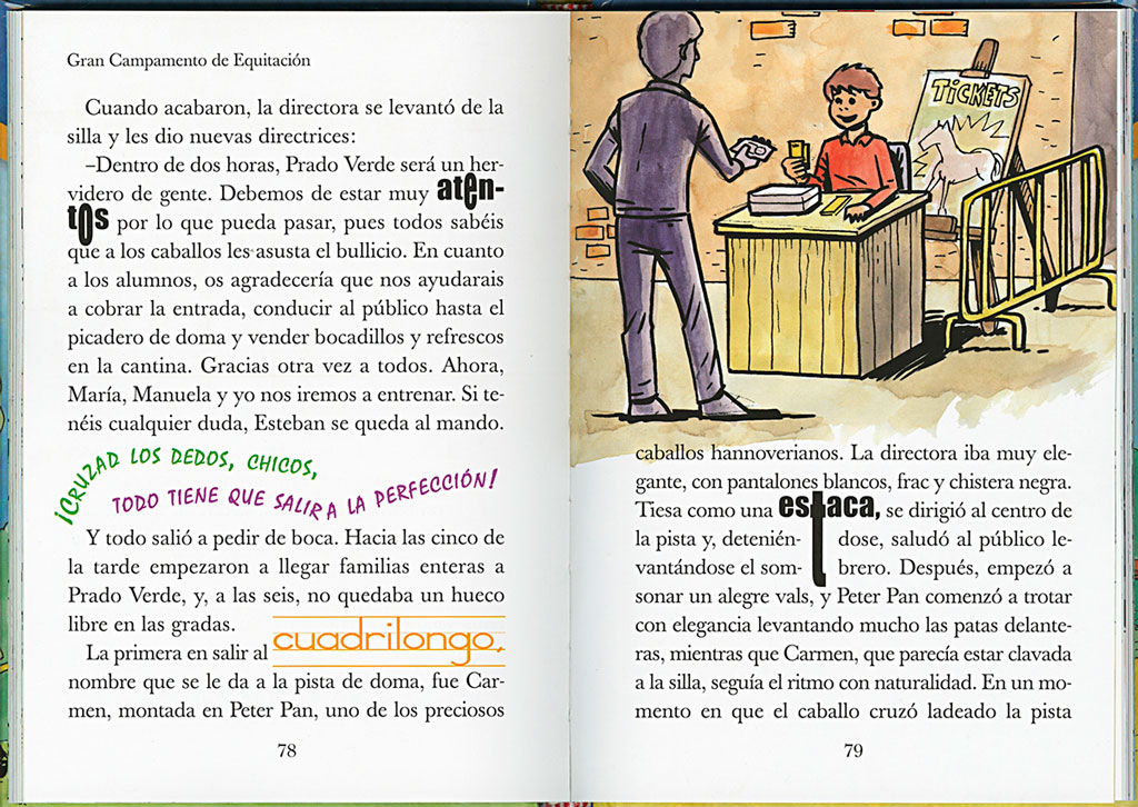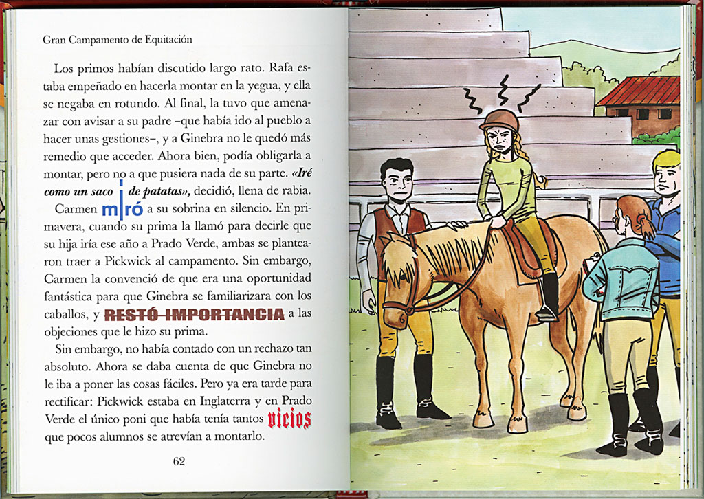 Maquetación de la serie de seis libros Gran campamento de equitación, ilustrados por Alberto Oyarvide y editados por Susaeta ediciones.