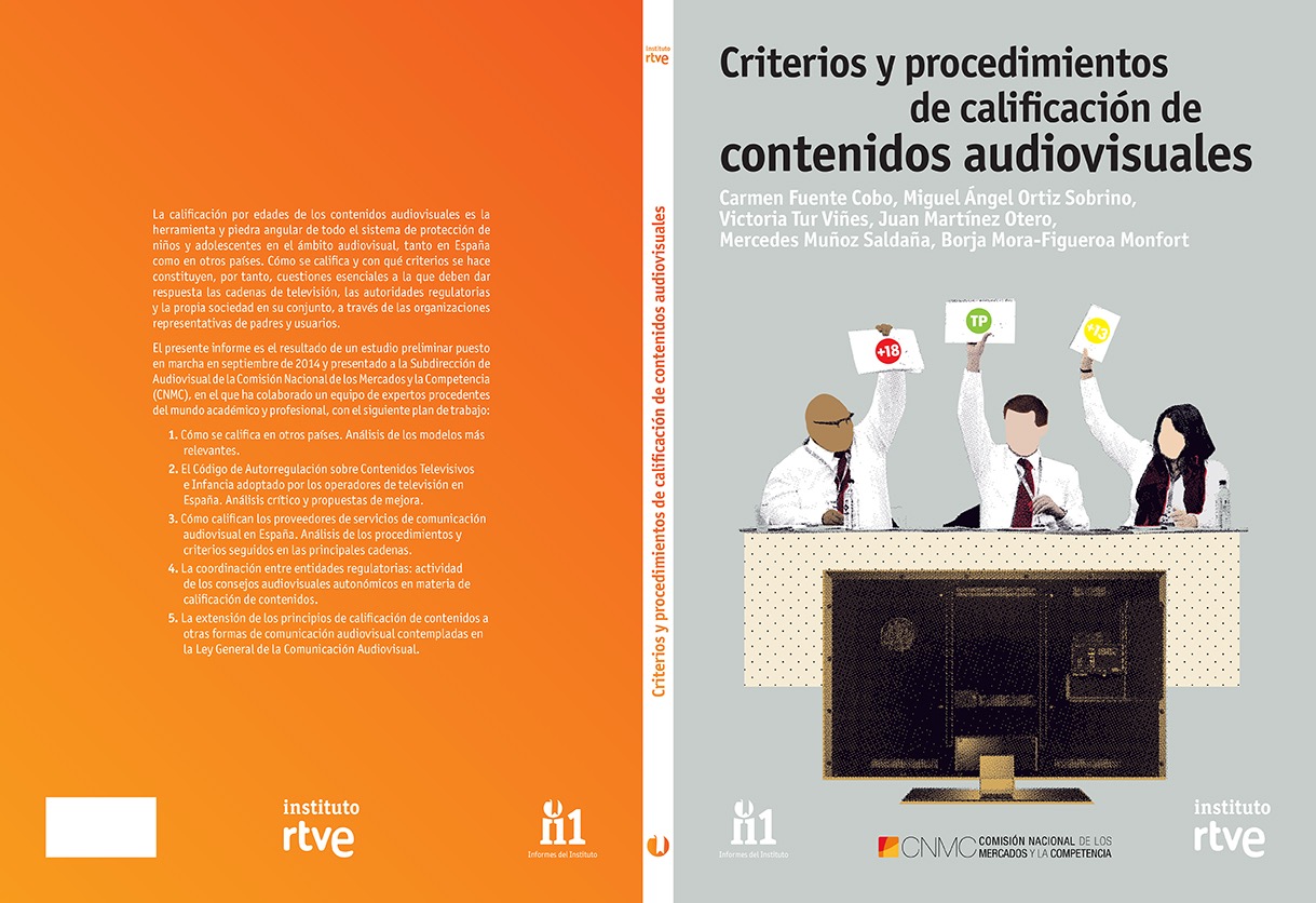 Diseño de portada y cubiertas del libro Criterios y procedimientos de calificación de contenidos audiovisuales, de la nueva colección Informes del Instituto, para el Instituto Radio Televisión Española (RTVE), y diseño del logotipo para esta nueva colección.