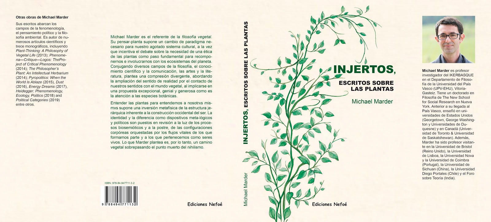 Diseño y maquetación completa de portada y tripas del libro Injertos, escritos sobre las plantas, de Michael Marder, para la editorial Nefoé.