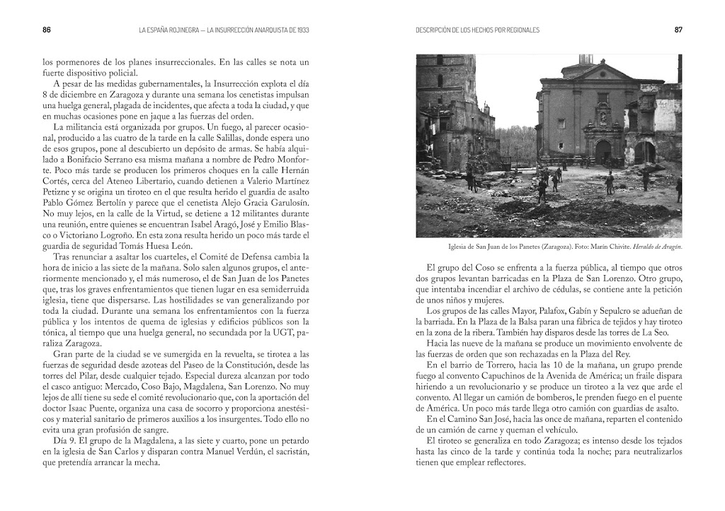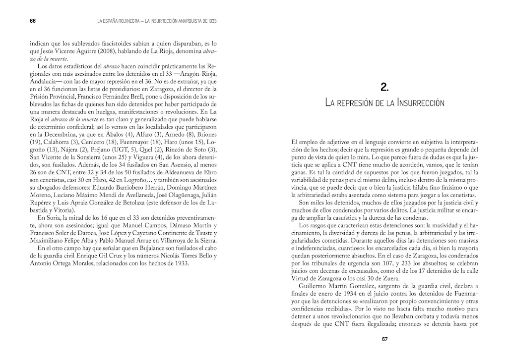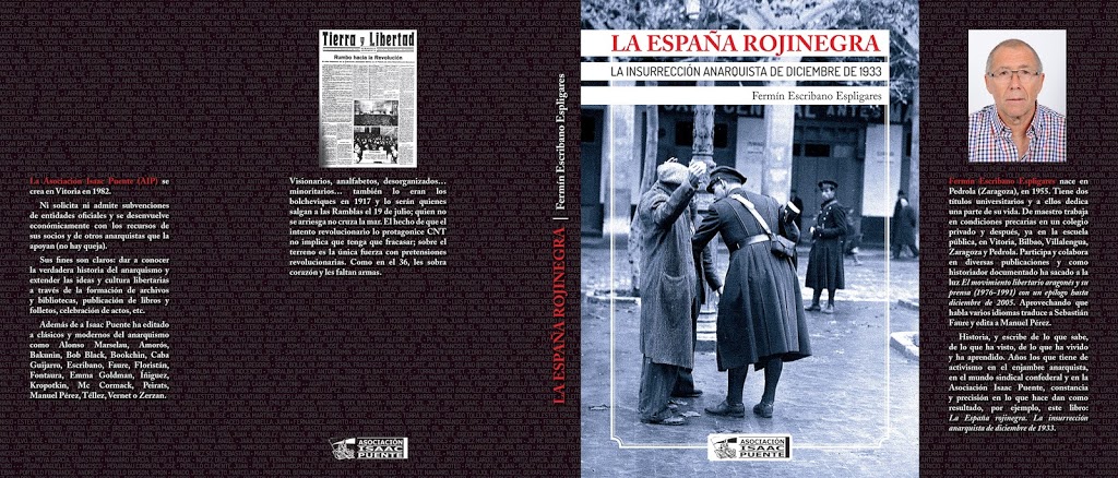 Diseño y maquetación completa de portada e interior del libro La España rojinegra. La insurrección anarquista de diciembre de 1933, de Fermín Escribano Espligares, para la editorial Asociación Isaac Puente.