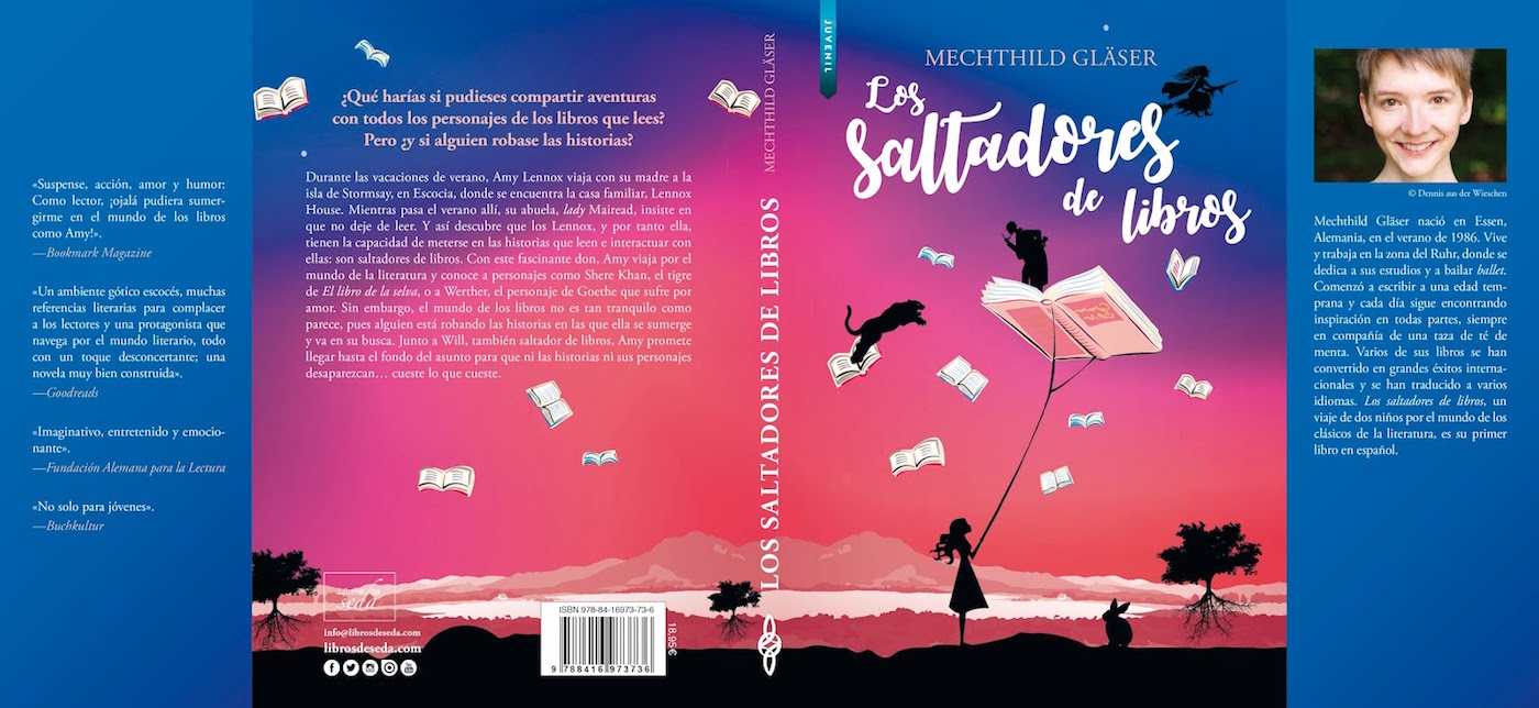 Adaptación de portada y maquetación de tripas del libro Los saltadores de libros, de Mechthild Gläser, para la editorial Libros de Seda.