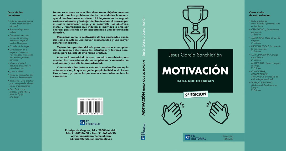 Diseño de portada del libro Motivación. Haga que lo hagan, de Jesús García Sanchidrián, para la editorial Fundación Confemetal.