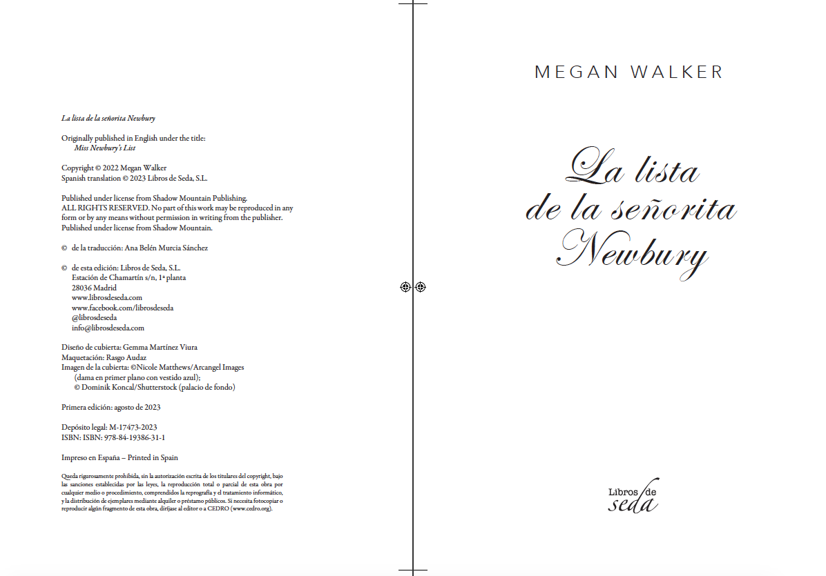 La lista de la señorita Newbury, de Megan Walker: otra novela de época en la extensa relación de trabajos realizados para Libros de Seda. En este caso nos ocupamos del diseño y maquetación interior de la obra, además de la guía de lectura que pone esta editorial a disposición de los lectores.
