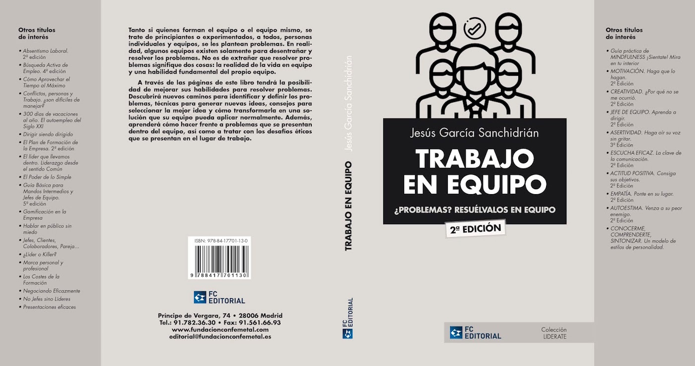 Diseño de portada del libro Trabajo en equipo, de Jesús García Sanchidrián, para la editorial Fundación Confemetal.